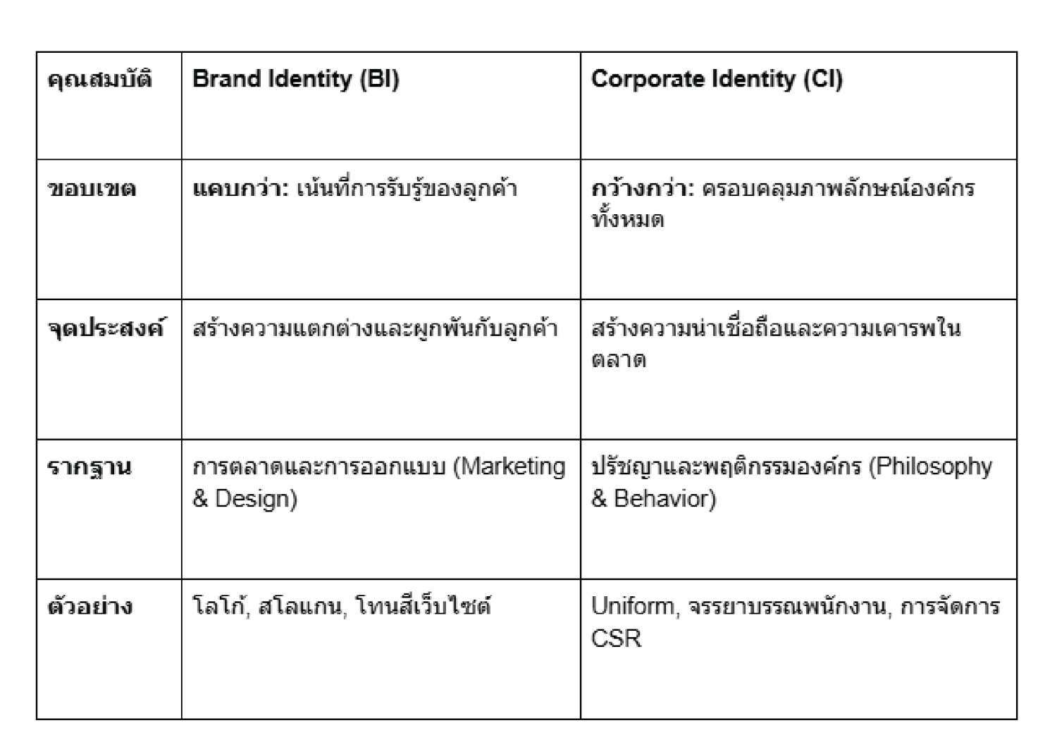 ตารางเปรียบเทียบ Brand Identity vs Corporate Identity